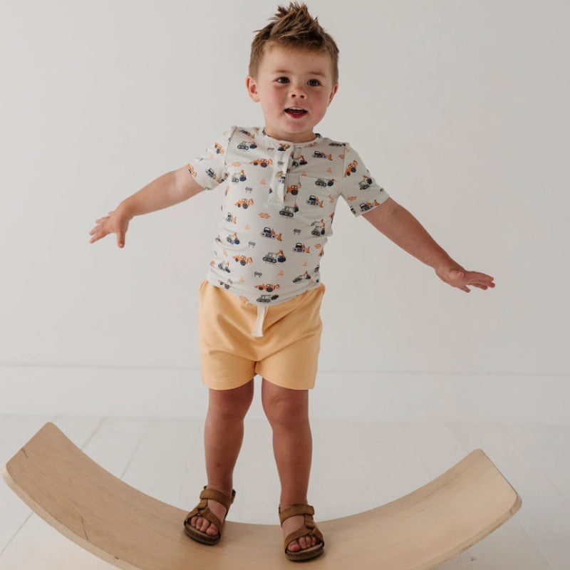 The Boy’s Short Sleeve Henley combines classic style with practical comfort. Made from lightweight bamboo jersey fabric, it’s soft, breathable, and durable for active play or casual outings. The Henley button placket adds subtle sophistication, while neutral and vibrant color options make it easy to mix and match with shorts, joggers, or jeans.